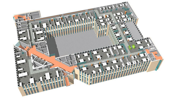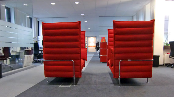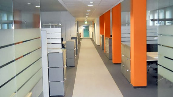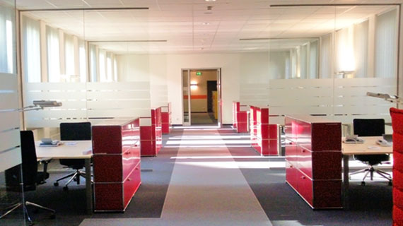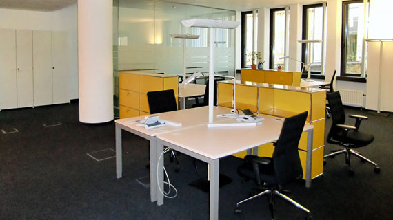 Diese Umbaumaßnahme stand im Zeichen der Arbeitsplatzoptimierung: Im Bereich von 3 Etagen (ca. 2.500 m²) wurde eine Nutzungsänderung beantragt, um flexible Büroflächen errichten zu können. Dem Mieter eröffnete sich dadurch die Möglichkeit, eine offene Bürostruktur zur optimalen Platzierung der Mitarbeiter anzubieten. Die Planung musste mit dem Bauherrn und auch mit dem unternehmenseigenen Betriebsrat verhandelt und abgestimmt werden.